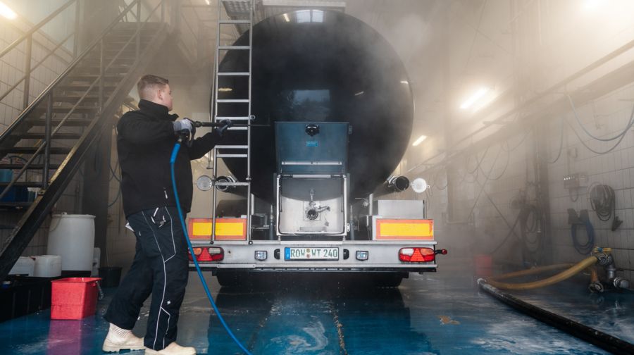 - Die Säuberung der Tank- und Silofahrzeuge von innen und außen
